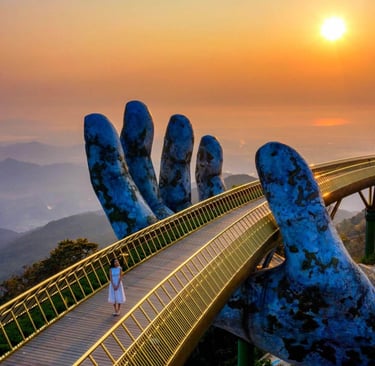 Afternoon: Free time to Explore Ba Na Hills Free for playing games in Fantasy Park – the third biggest indoor games zone in Vietnam . The complex is divided into 3 floors, with all kinds of games, game thrills and attractions, cinemas 3D, 4D, 5D, the most modern mega 360 degrees and only in Vietnam, 29m freefall tower, the highest in Vietnam and many other exciting games. The Fantasy Park Ba Na Hills offers different cuisines such as asian but also western cuisine. Join this tour, you also have the opportunity to visit Golden Bridge, a hot check-in place recently in Vietnam. This bridge seems a golden and sparkling scarf and embraced by giant hands with the height of 1414m from the sea level. After that we will return to Da Nang city and head back to your hotel. Tour ends. 16:30:Tour ends. Our guide will say good bye and hope to see you again!